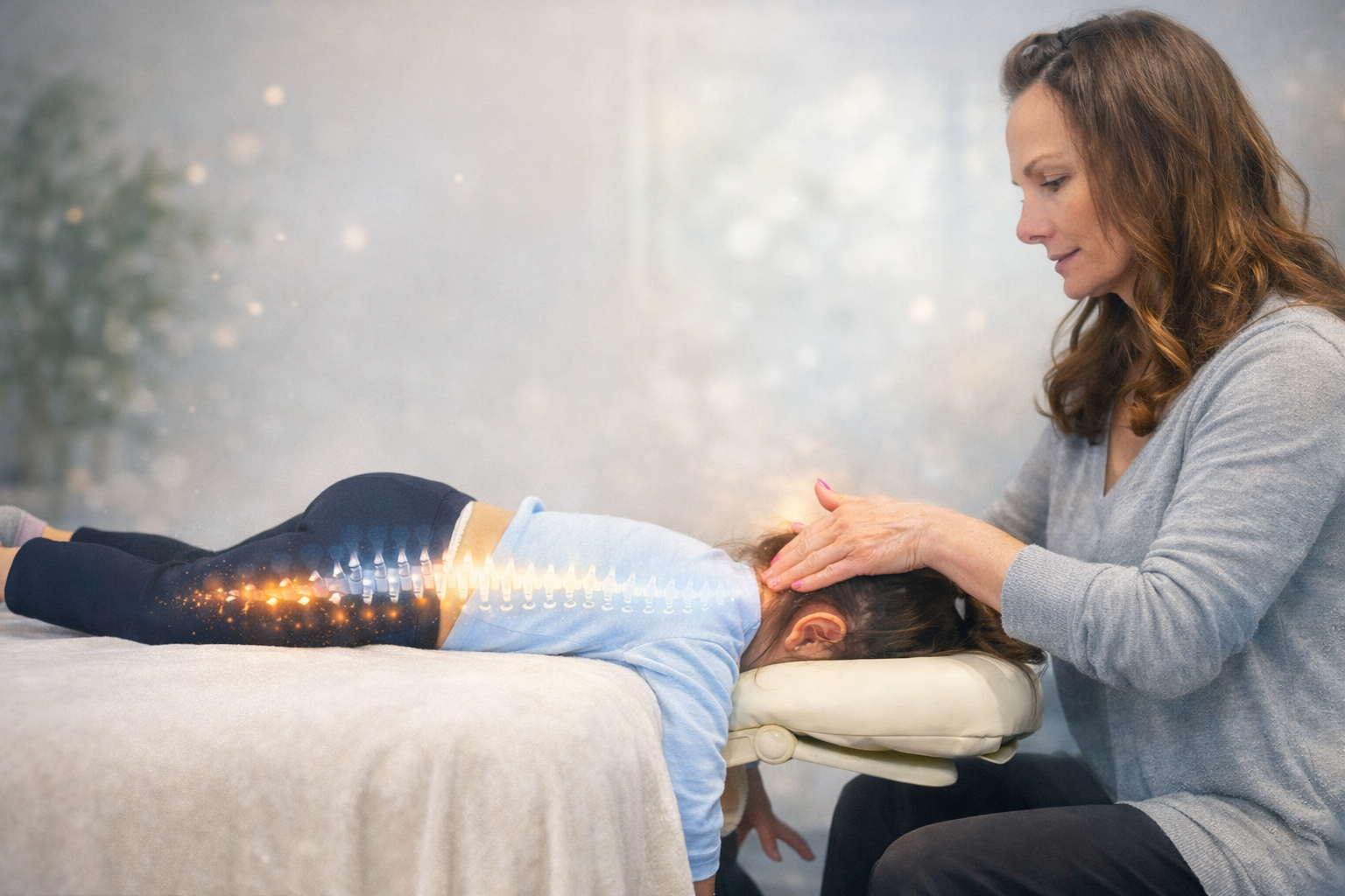 Spinal Flow is a gentle, non-invasive, nervous system–based approach that helps the body release stored stress and tension so it can regulate and heal naturally. It works by identifying and supporting areas of spinal blockages that interfere with communication between the brain and body.
